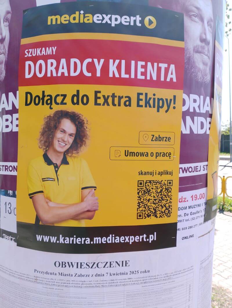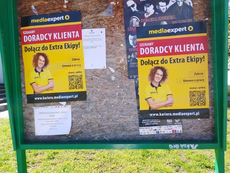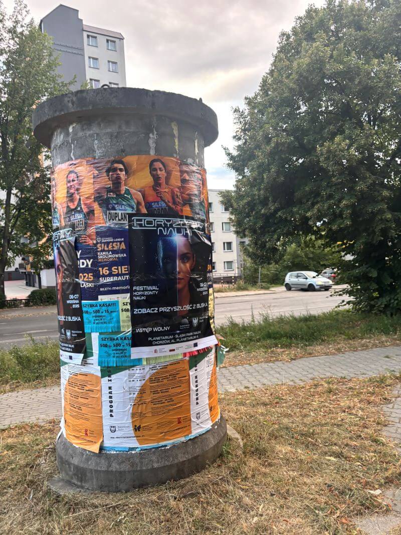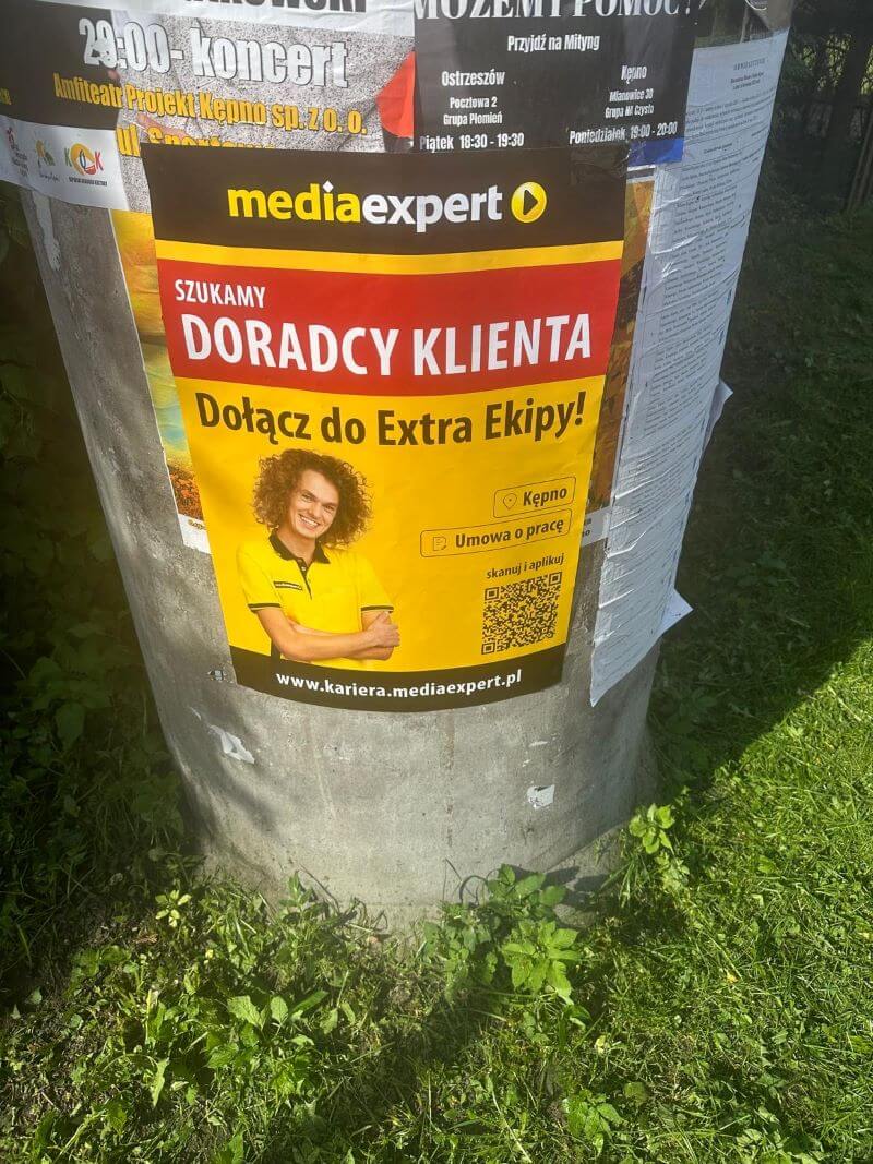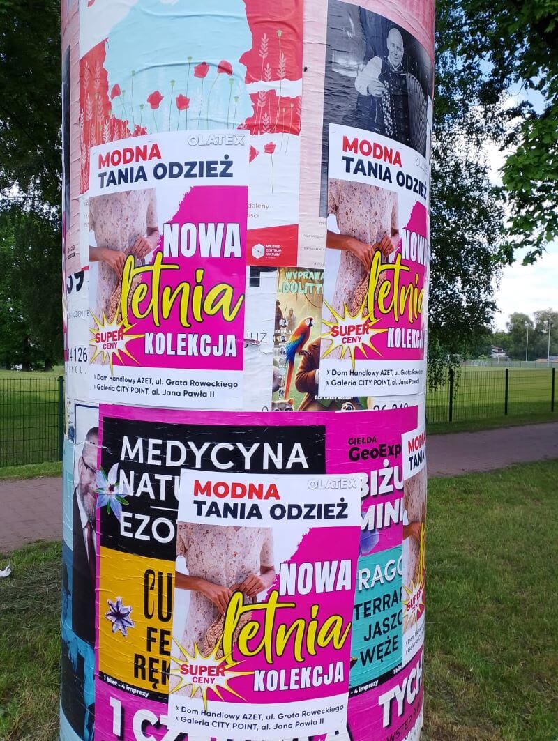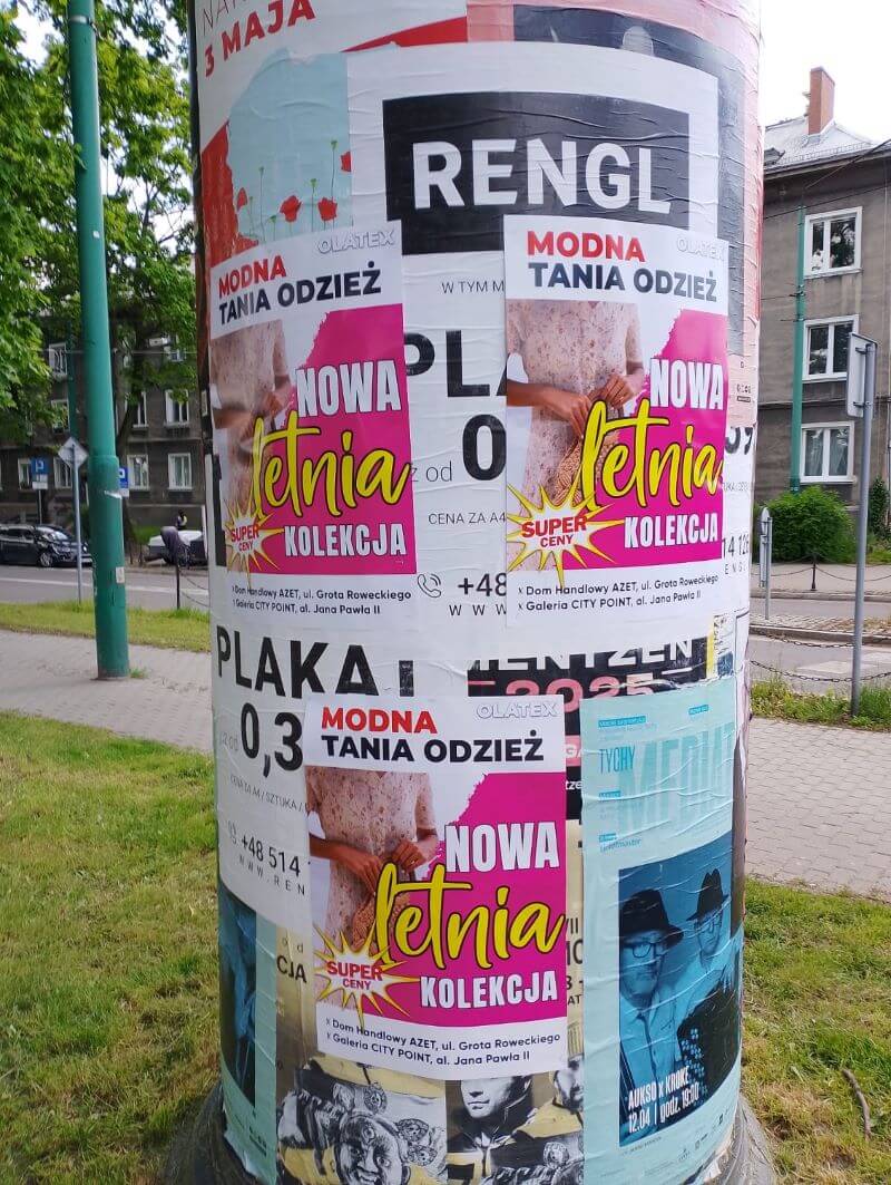 Plakaty reklamowe są rozwieszane zgodnie z ustalonym zakresem, w wybranych punktach przestrzeni miejskiej.